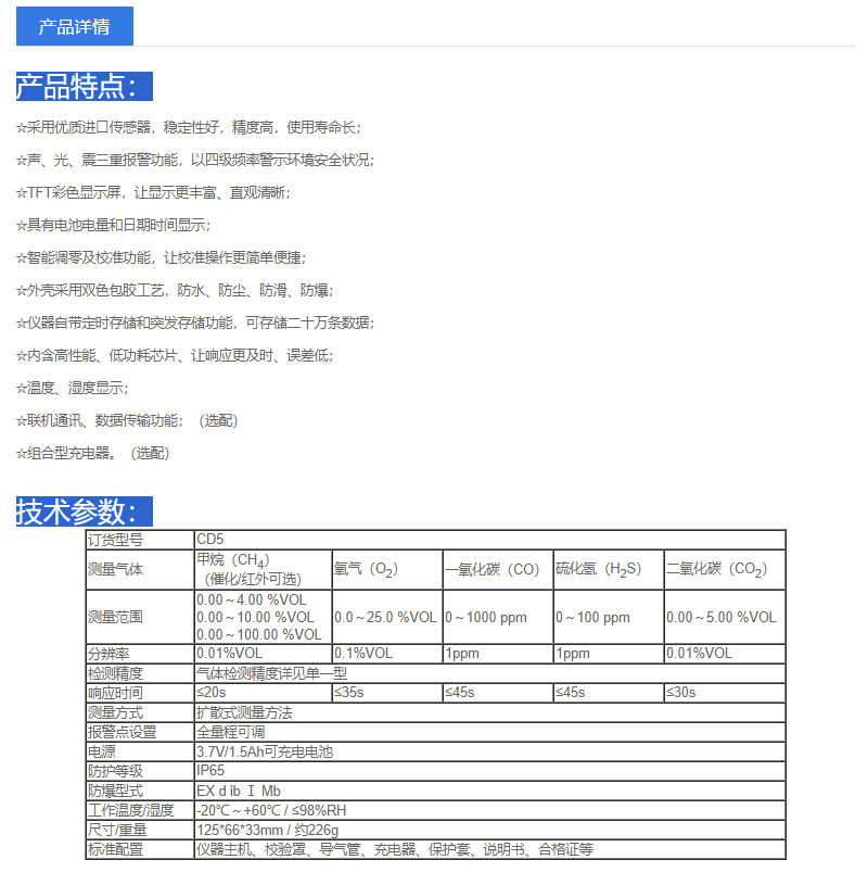 卓安 CD5便携式五合一气体测检测仪(甲烷/氧气/一氧化碳/硫化氢/二氧化碳);