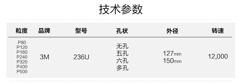 ●3M 236U 3寸无孔背绒干磨砂纸;
