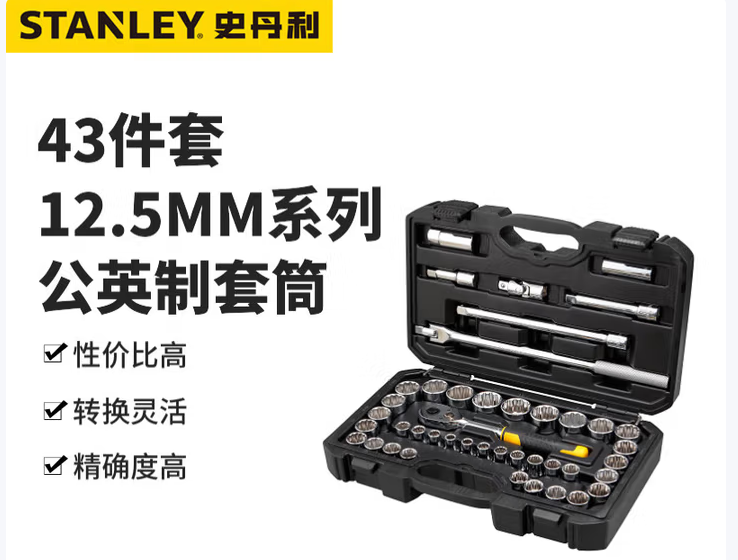• 商品名称:史丹利 STMT45505-23 43件套12.5MM系列公英制套筒组套