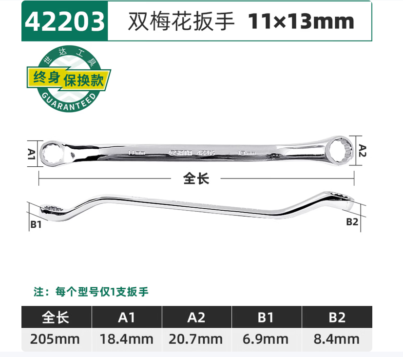 • 商品名称:世达工具 42203 全抛光双梅花扳手