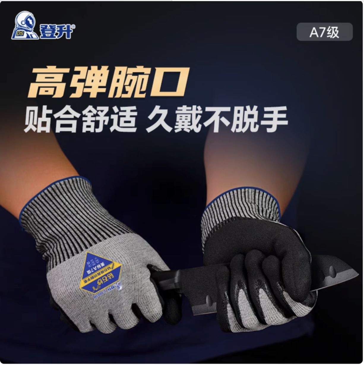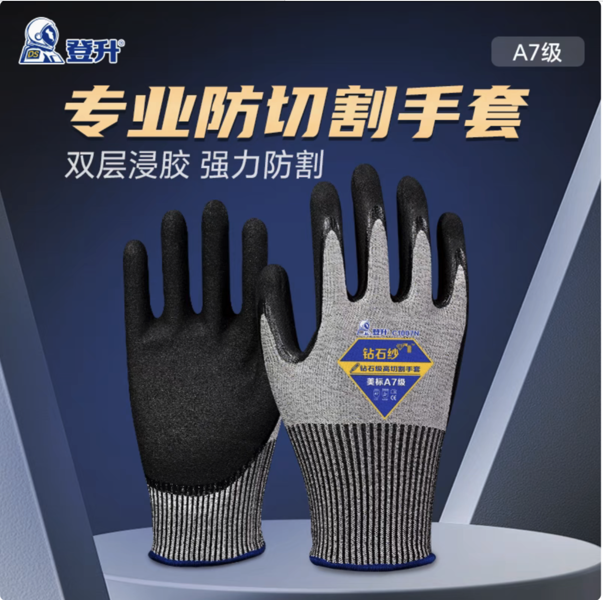 独特包覆钻石纱工艺,防割性能更好;防割性能可达欧标EN388 F级以上;美标A7级;