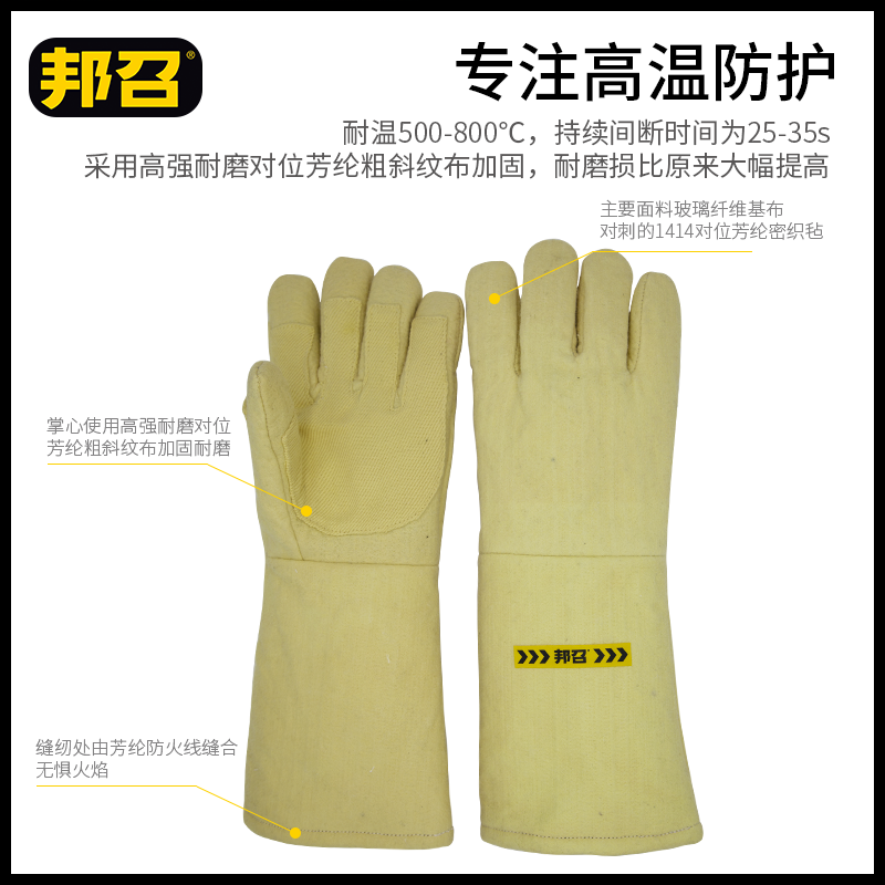 3.推荐用途:玻璃、水泥、陶瓷等行业窑炉高温抢修时工作人员的手部防护;
