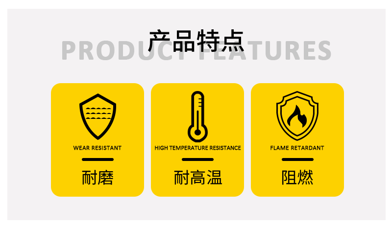 4.产品特点:阻燃、隔热、耐磨可重复使用。