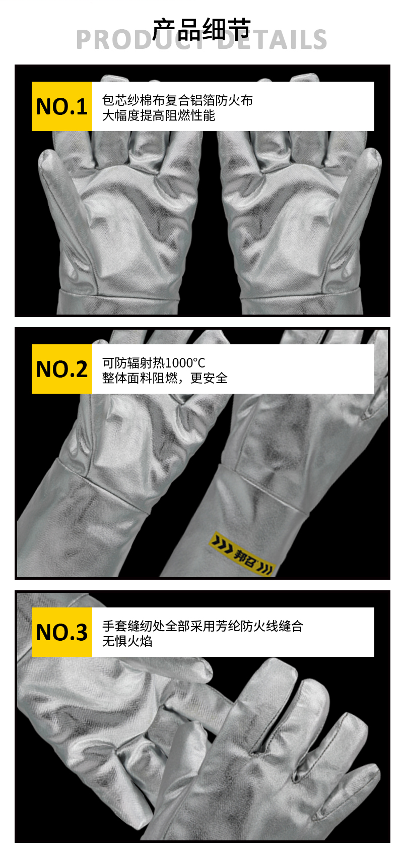 产品名称:邦召铝箔隔热手套