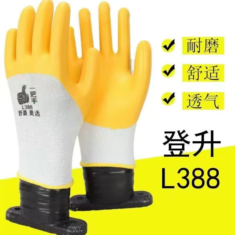 手套采用3/4浸乳胶涂层,防护更全面;防滑耐磨性能优异;
