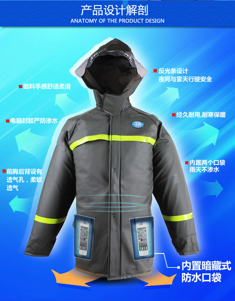 产品介绍:前胸2个透气孔,后背无透气孔,松紧裤腰两侧2个透气孔