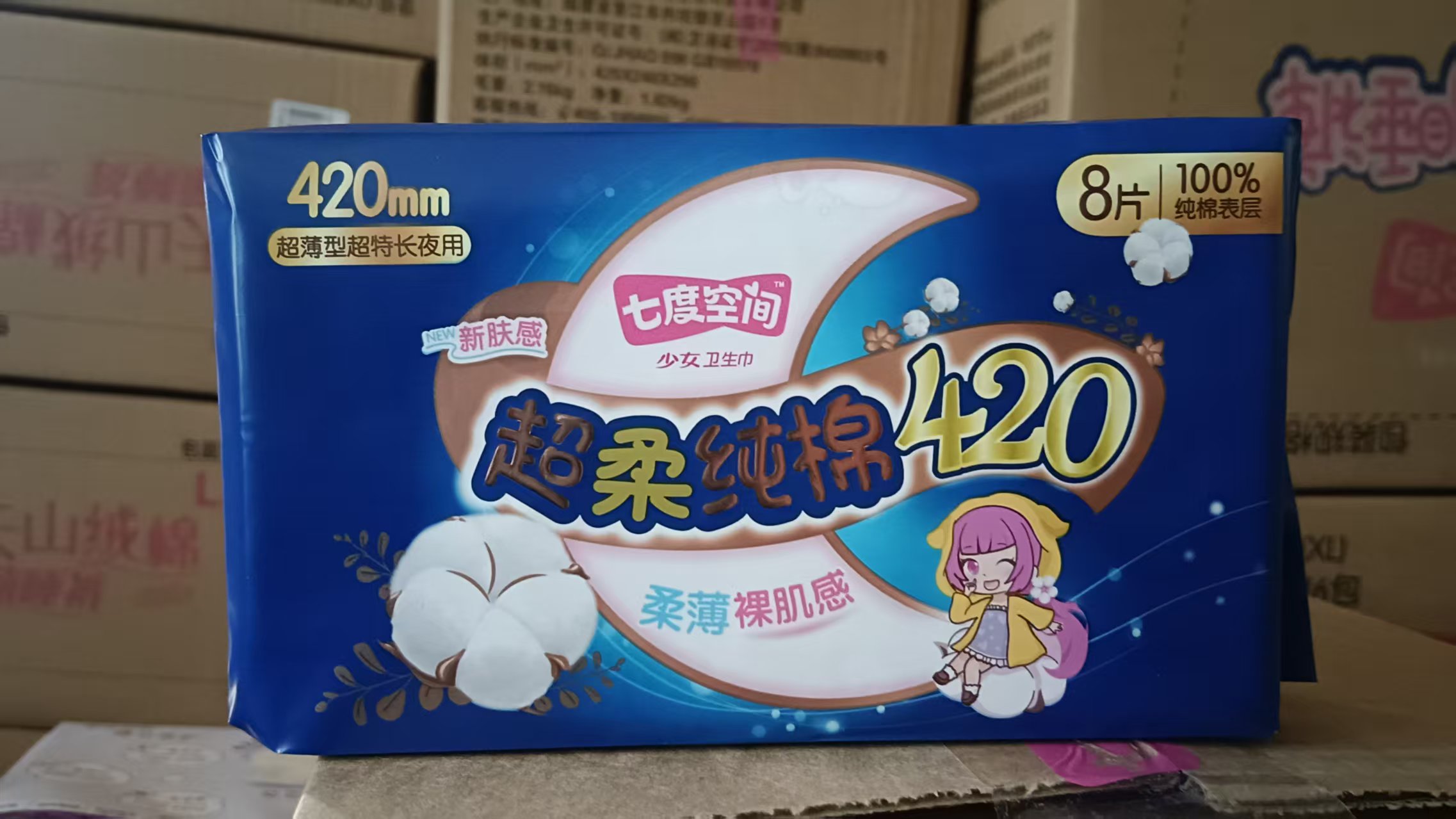 • 商品名称:七度空间 超柔纯棉空间夜用 卫生巾420mm(8片装)