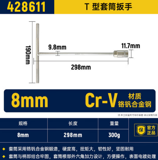 • 商品名称:长城精工 428611 T型套筒扳手