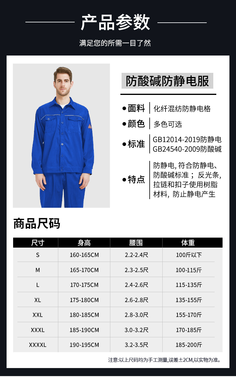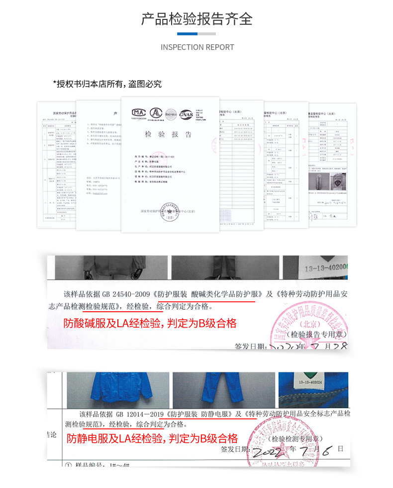 佰益 6007 夏季防酸碱工作服艳蓝色
