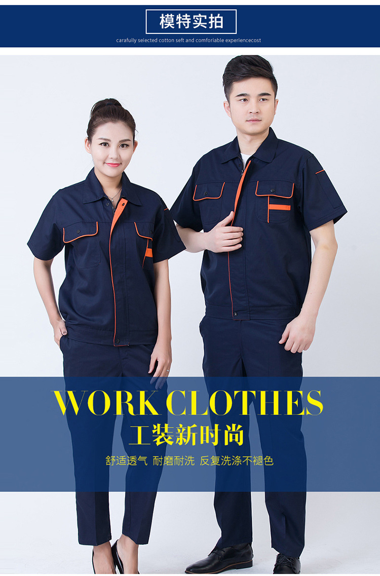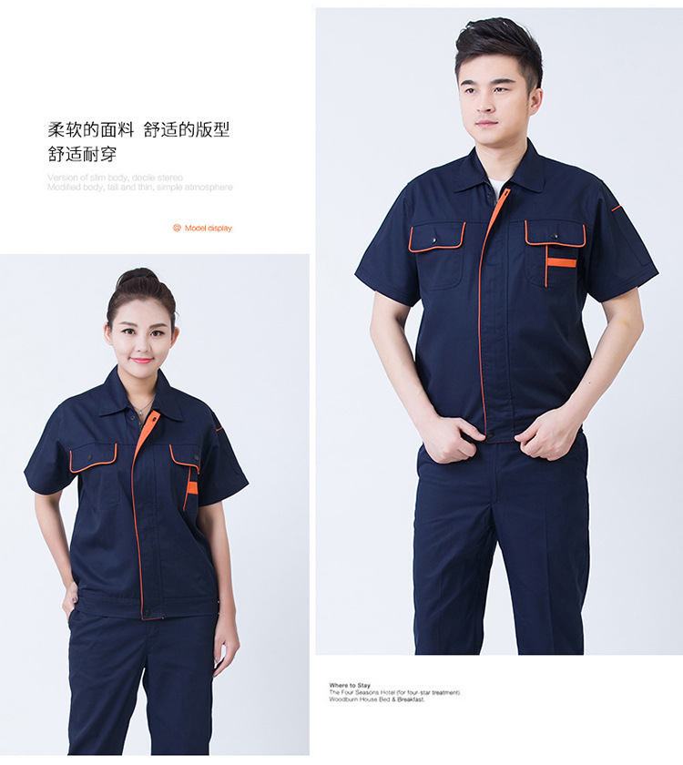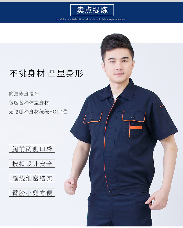 • 商品名称:君御JY-S1701全工艺涤棉细斜纹薄款纯色短袖工作服套装藏蓝色