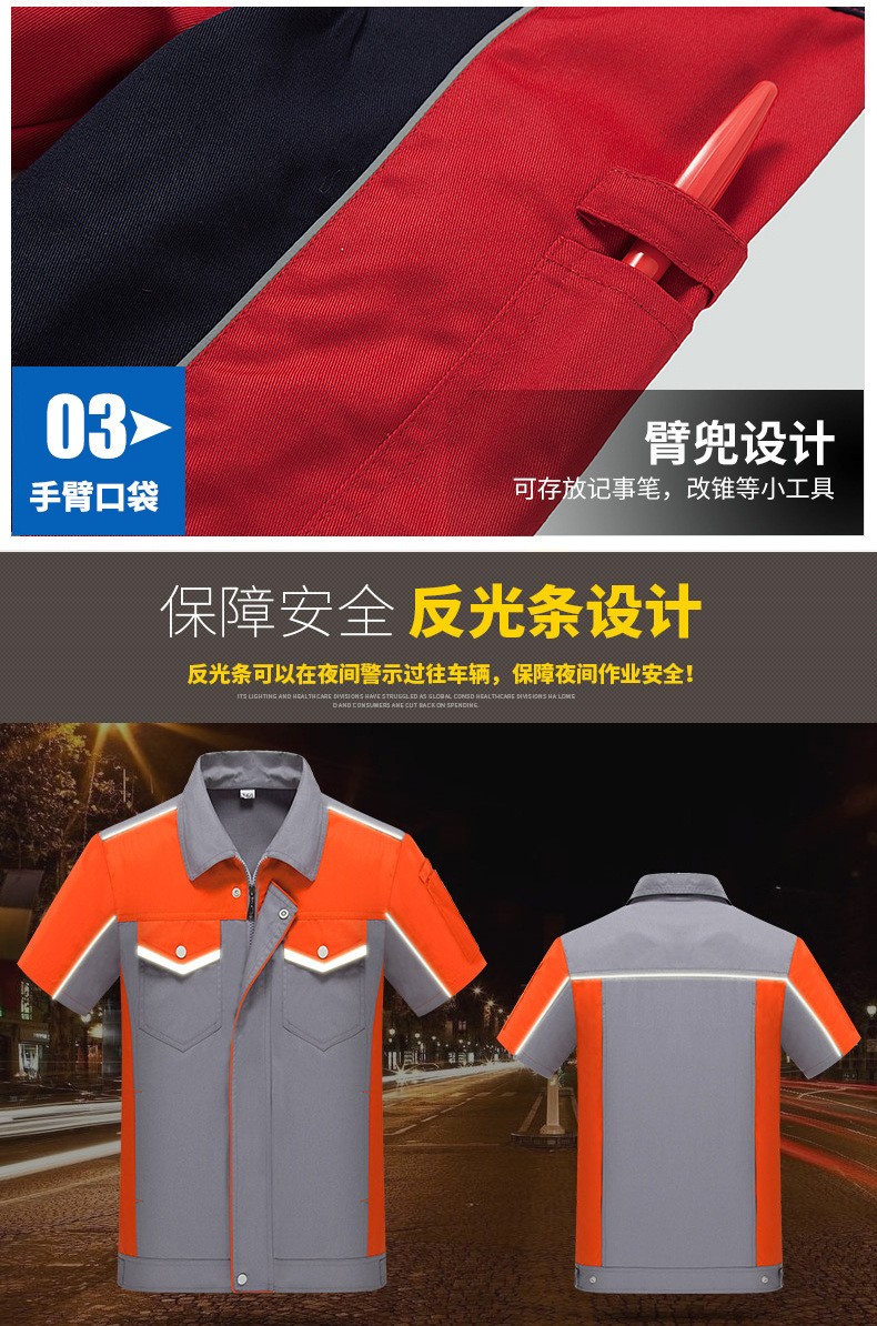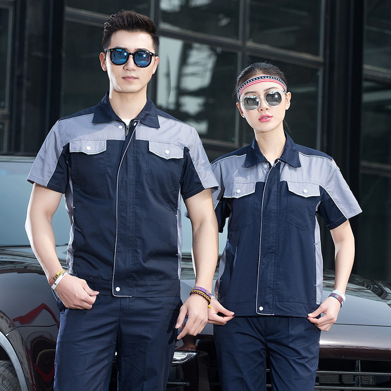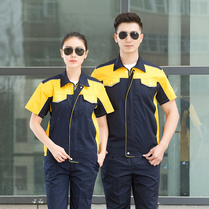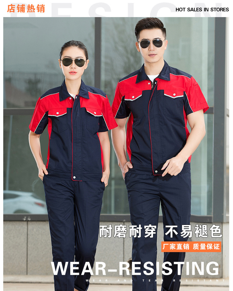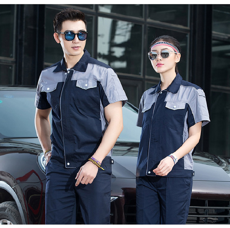 • 商品名称:君御JY-S1506全工艺涤棉细斜纹薄款糖果拼接短袖工作服套装艳兰拼灰色
