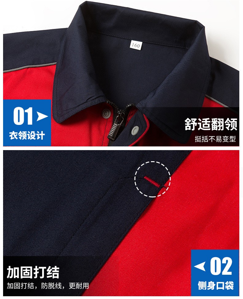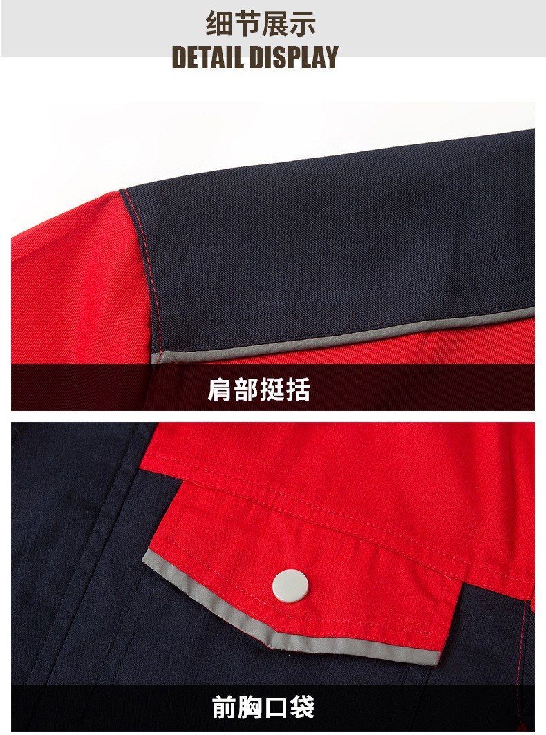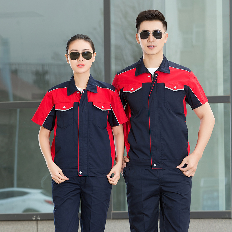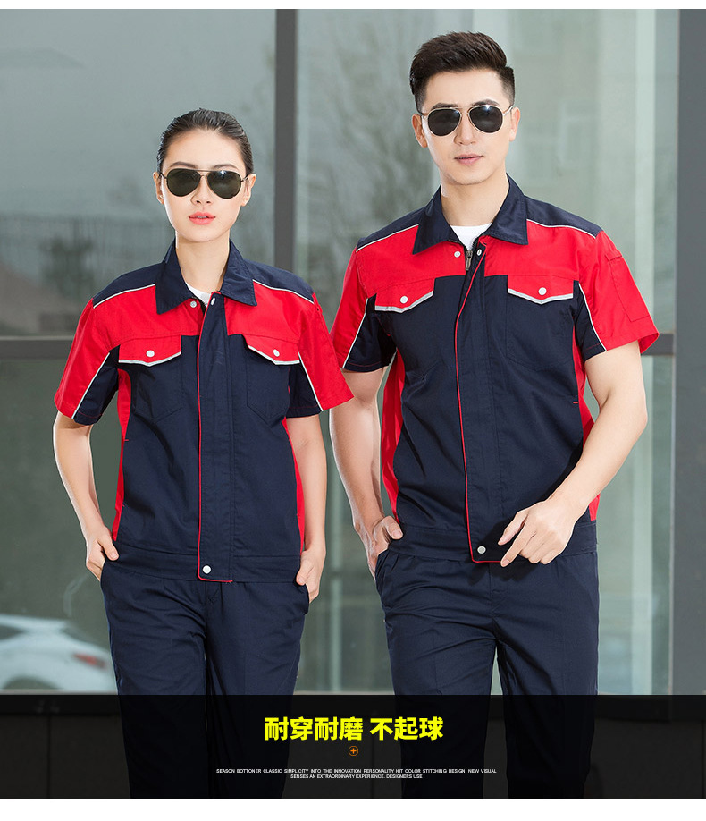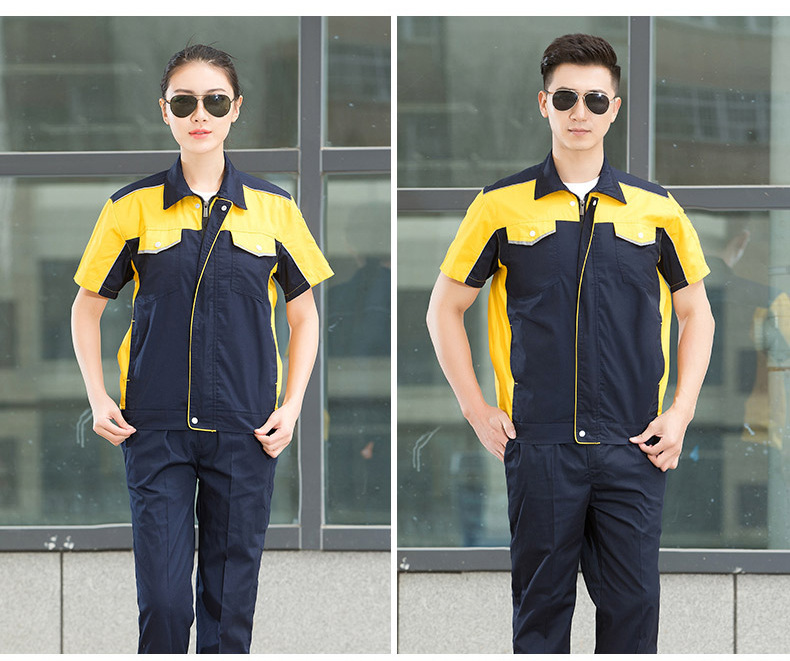 • 商品名称:君御JY-S1505全工艺涤棉细斜纹薄款糖果拼接短袖工作服套装中灰配橘红色