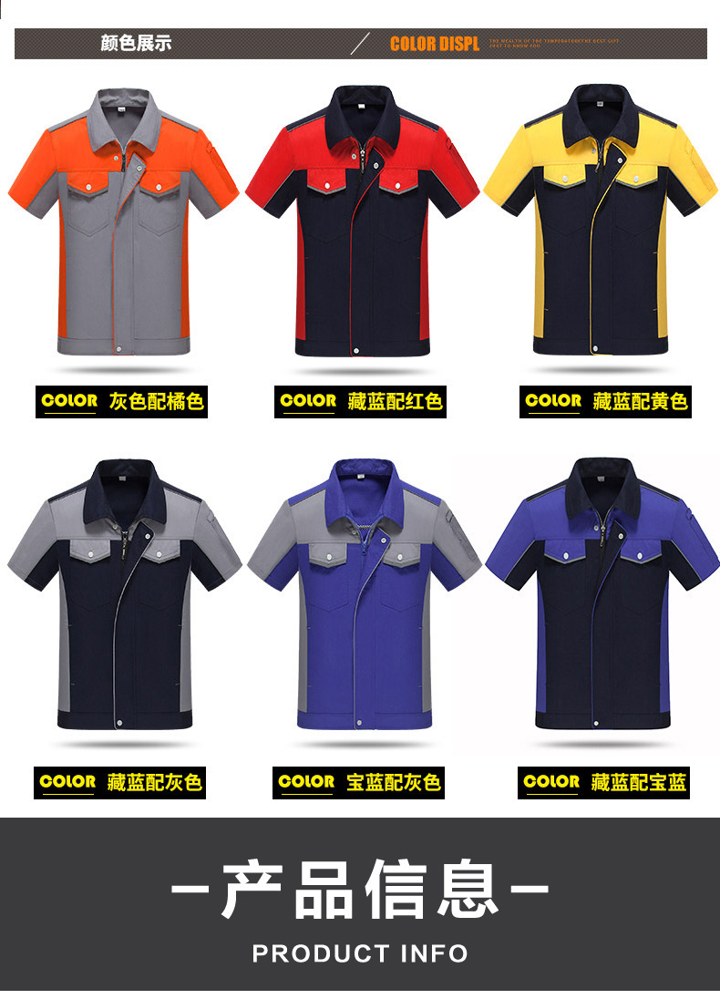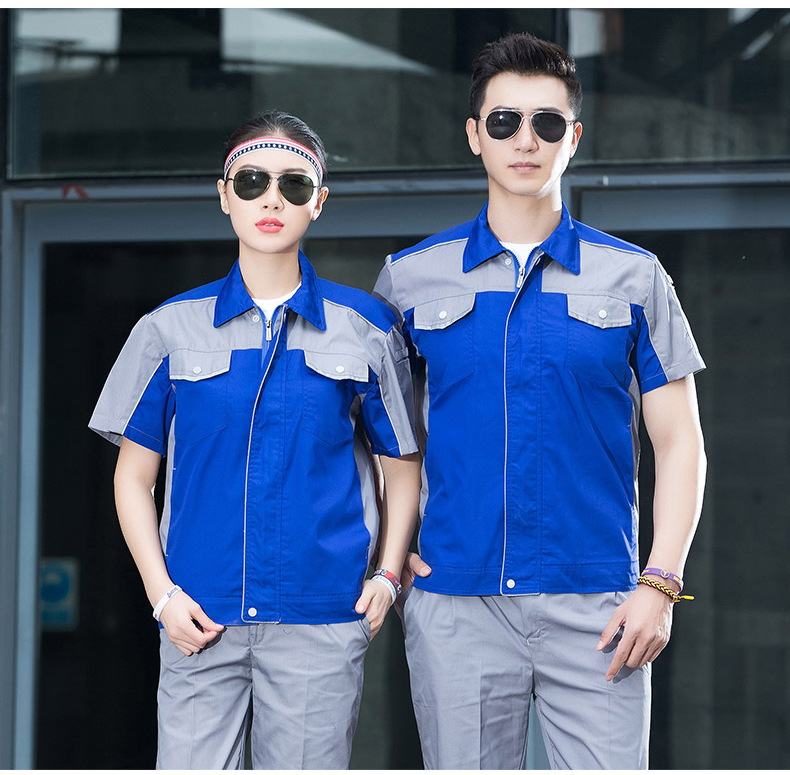 • 商品名称:君御JY-S1504全工艺涤棉细斜纹薄款糖果拼接短袖工作服套装藏蓝配艳兰色