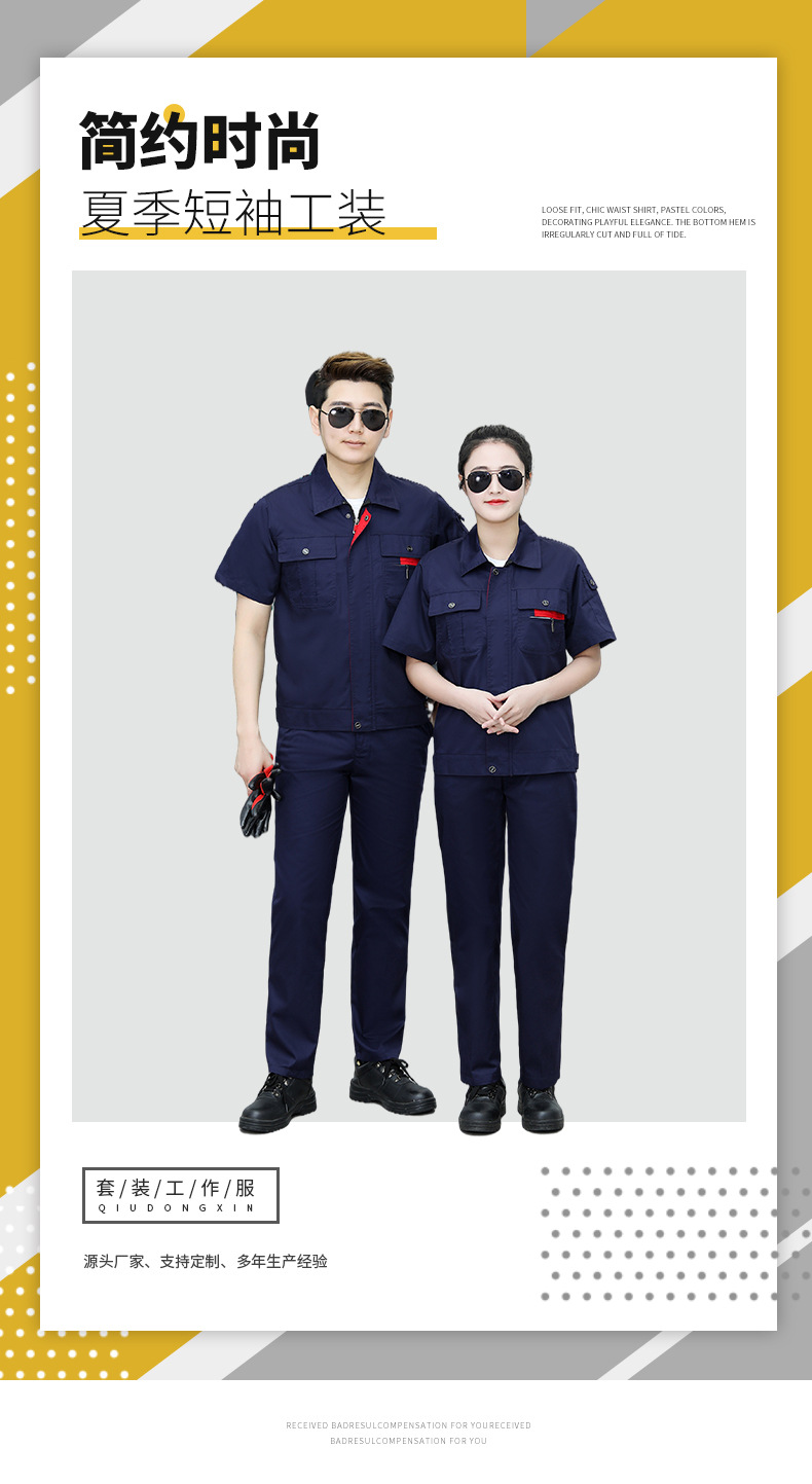 • 商品名称:君御JY-S1408全工艺涤棉细斜纹薄款立领短袖工作服套装藏蓝色