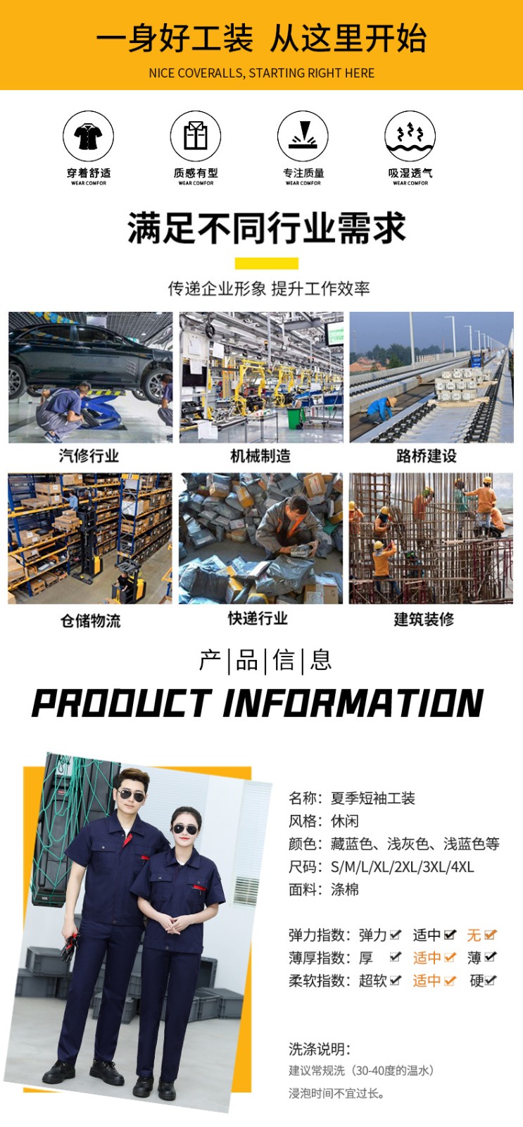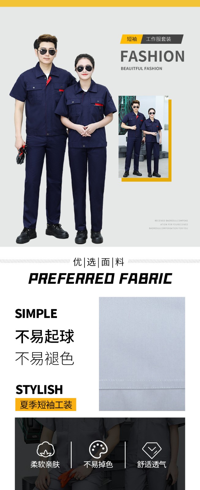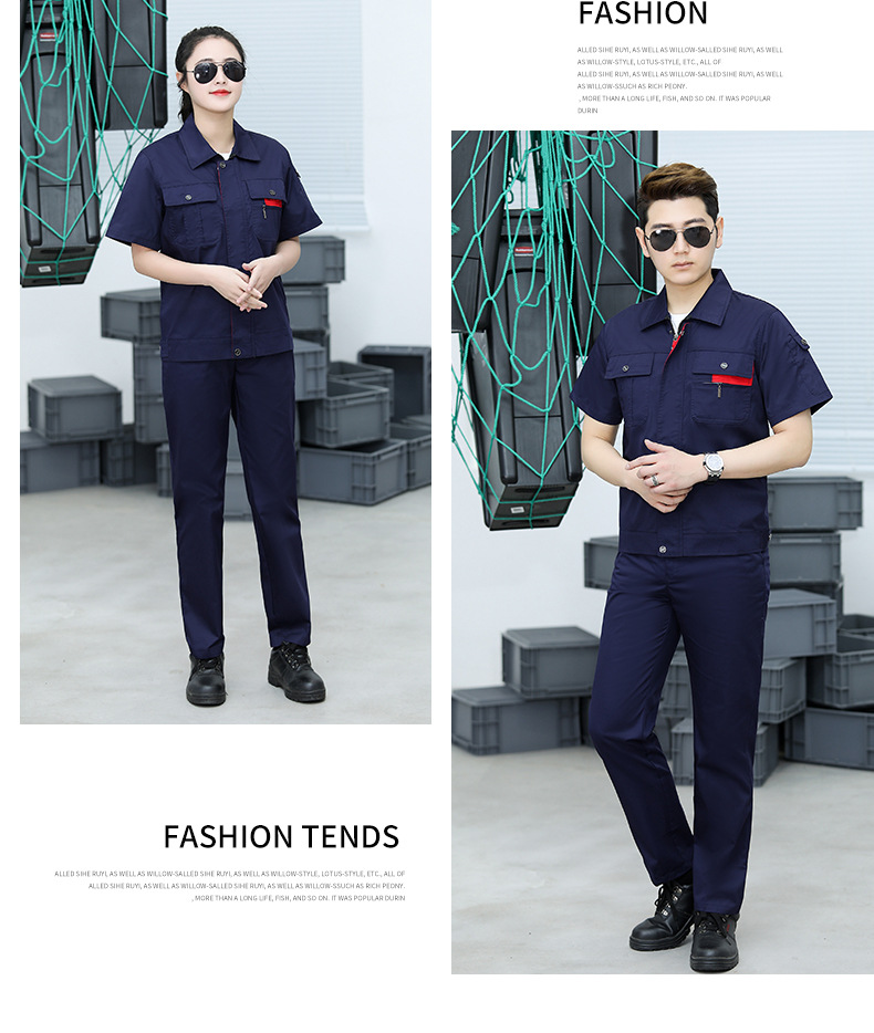 • 商品名称:君御JY-S1404全工艺涤棉细斜纹薄款短袖工作服套装艳兰色