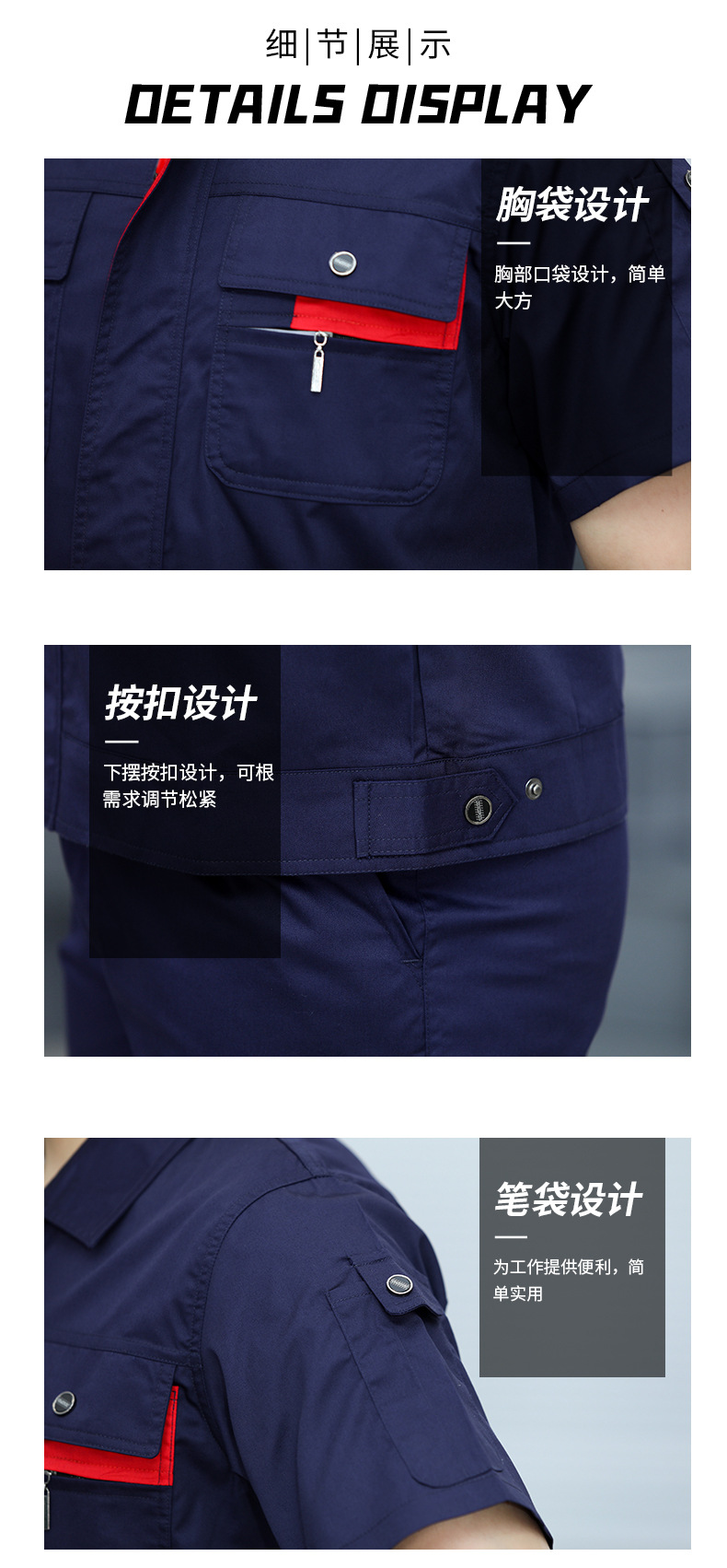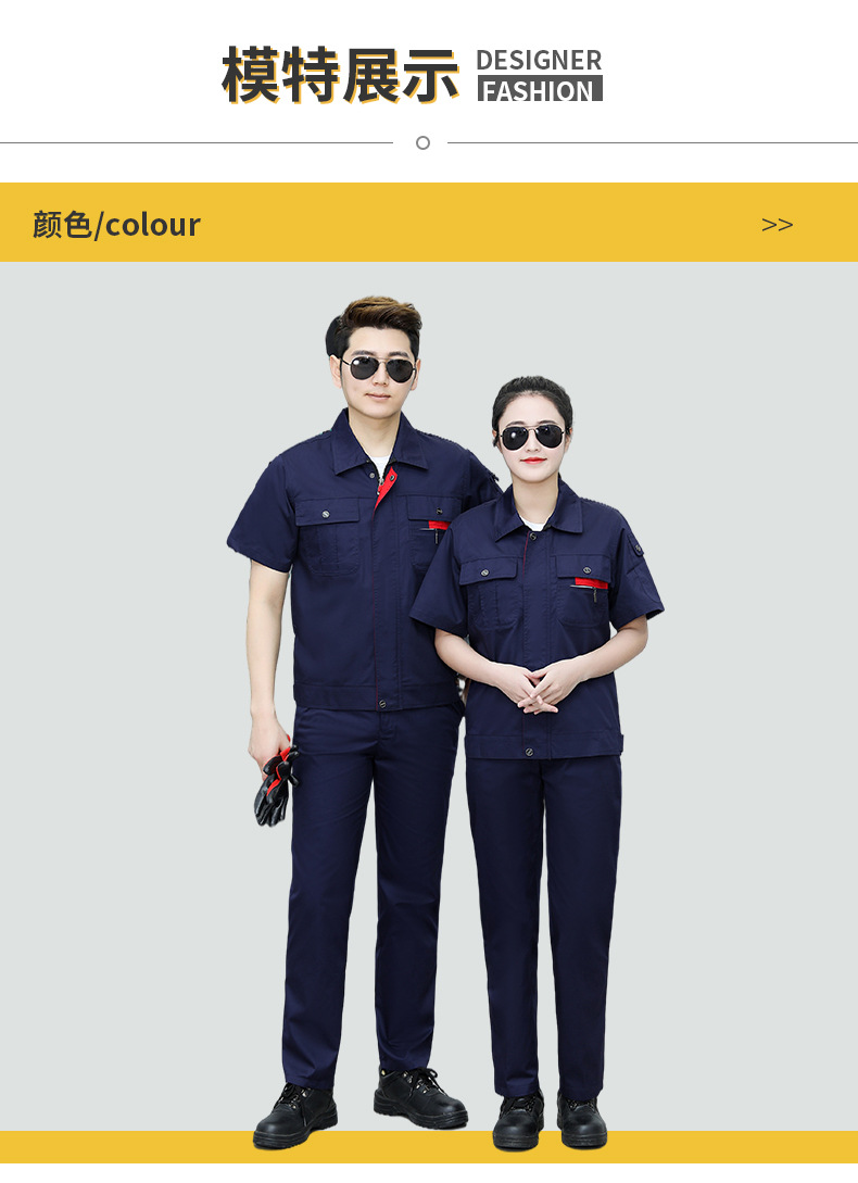 • 商品名称:君御JY-S1401全工艺涤棉细斜纹薄款短袖工作服套装藏蓝色