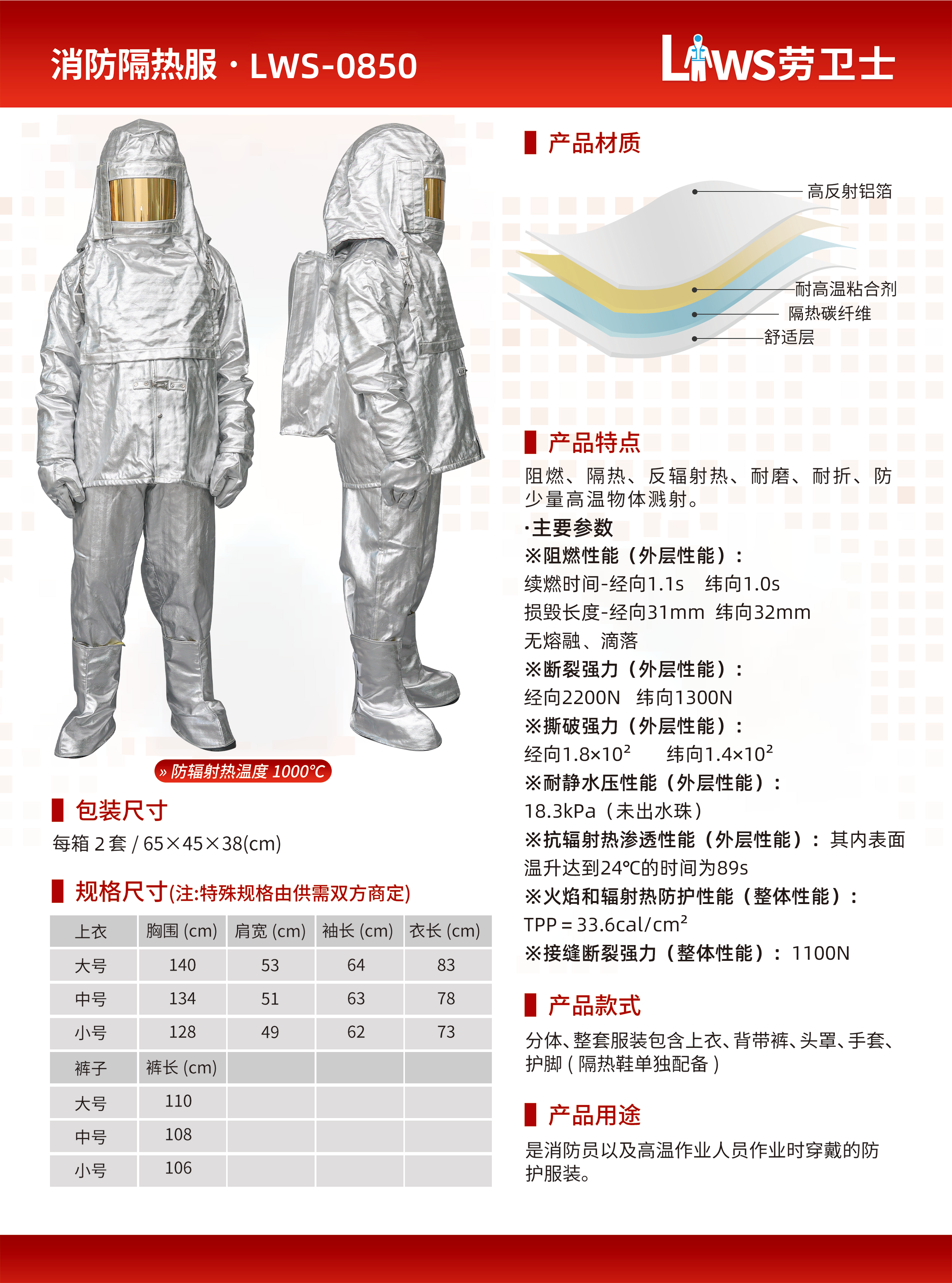 • 商品名称:劳卫士 LWS-0850 消防隔热服