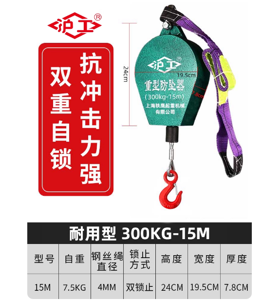 • 商品名称:沪工 300公斤-15米 双锁止 速差器