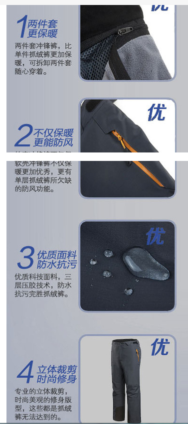 • 商品名称:百劳汇 加绒加厚 可拆卸户外冲锋裤