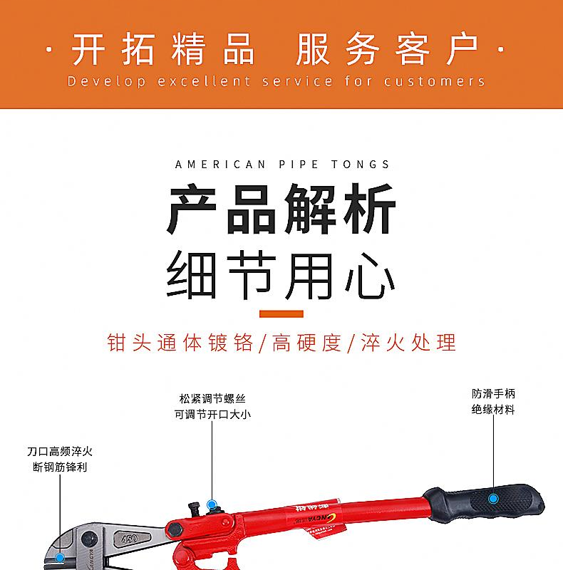 加厚钳头设计,经典省力三联臂设计,使用方便省力