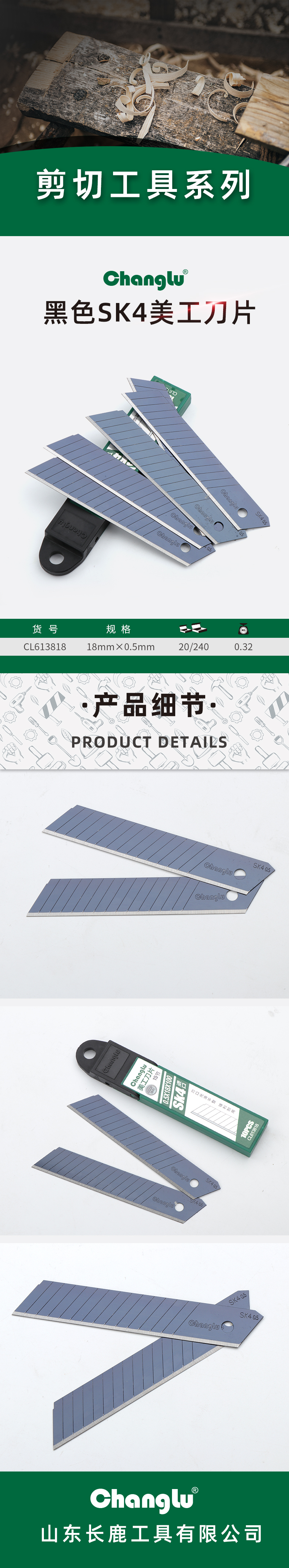 • 商品名称:长鹿 CL613818 黑色SK4美工刀片(10片/盒)