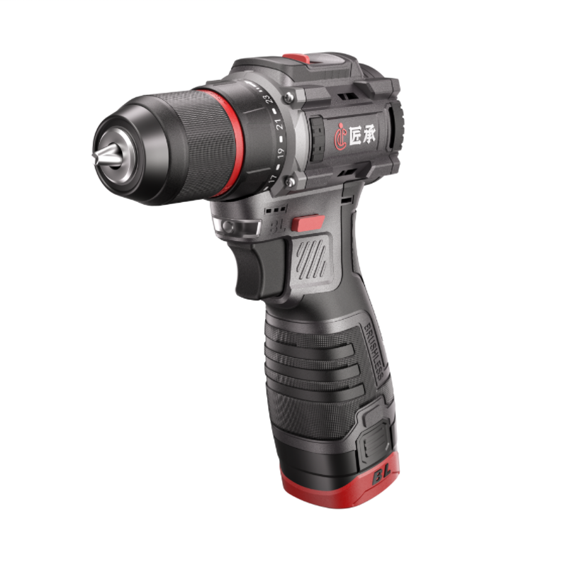 16V无刷锂电钻,大扭力,高低速调节,正反转无极调速开关,包胶手柄。