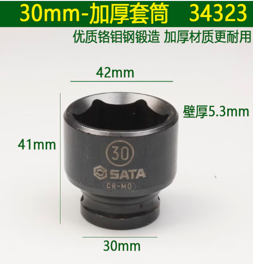 • 商品名称:世达工具 34323 1/2"系列六角风动套筒30MM