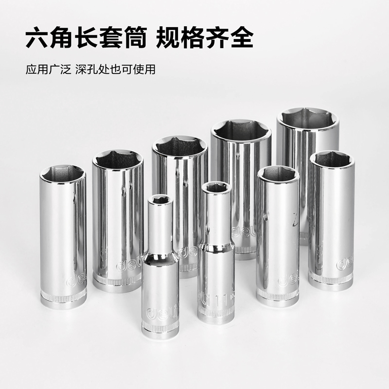• 商品名称:得力工具 (终保)12.5mm系列六角长套筒(银)