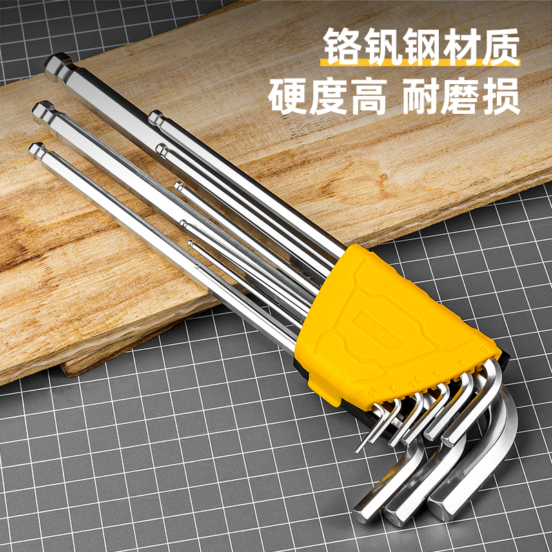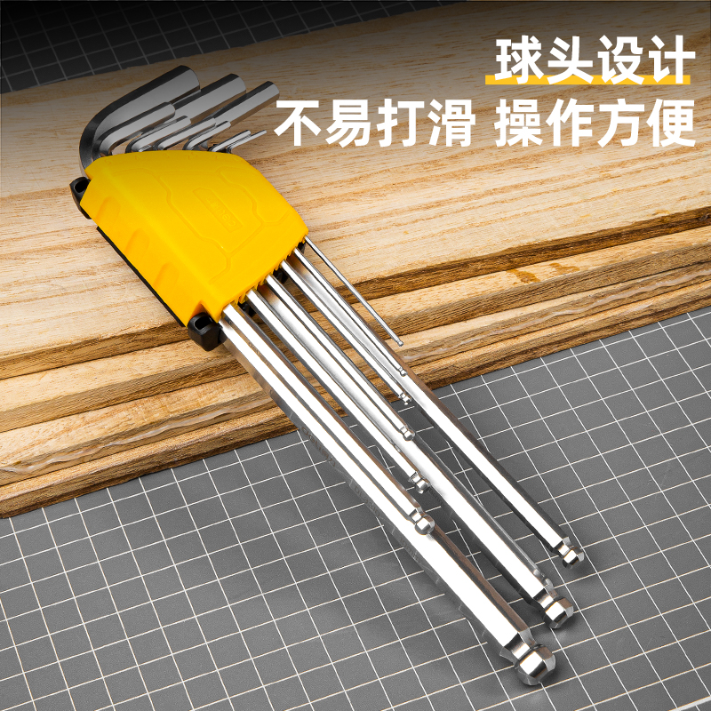 • 商品名称:得力工具 特长球头内六角组套塑架(黄)