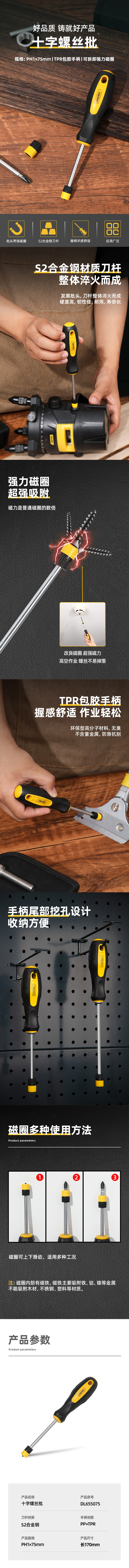 • 商品名称:得力工具 磁圈十字螺丝批S2(黄)