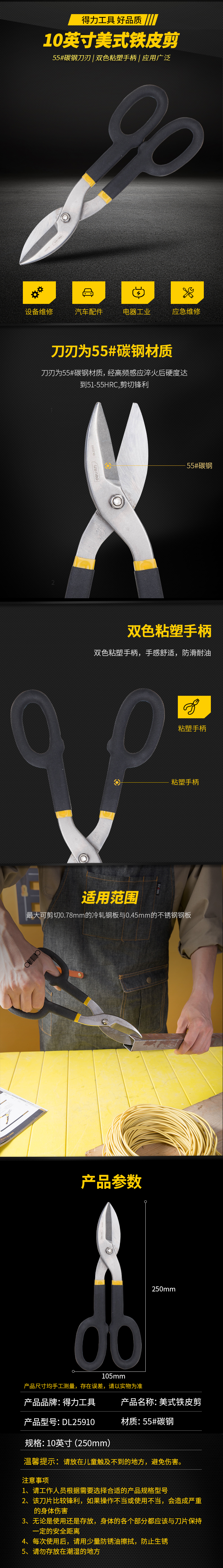 • 商品名称:得力工具 美式铁皮剪(黄)