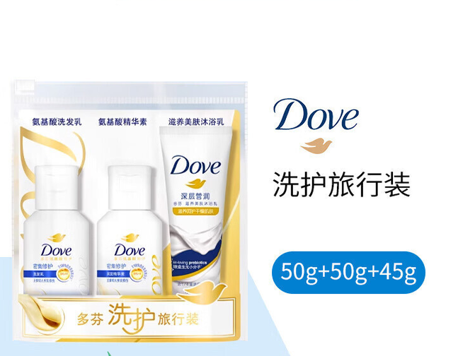 • 商品名称:多芬 洗护沐三件套 (洗发乳50+精华素50g+沐浴露45g)