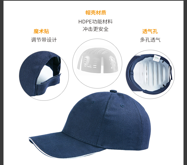 1.优质全棉面料拼接网布运动款帽型设计,内置HDPE(聚乙烯)帽壳;