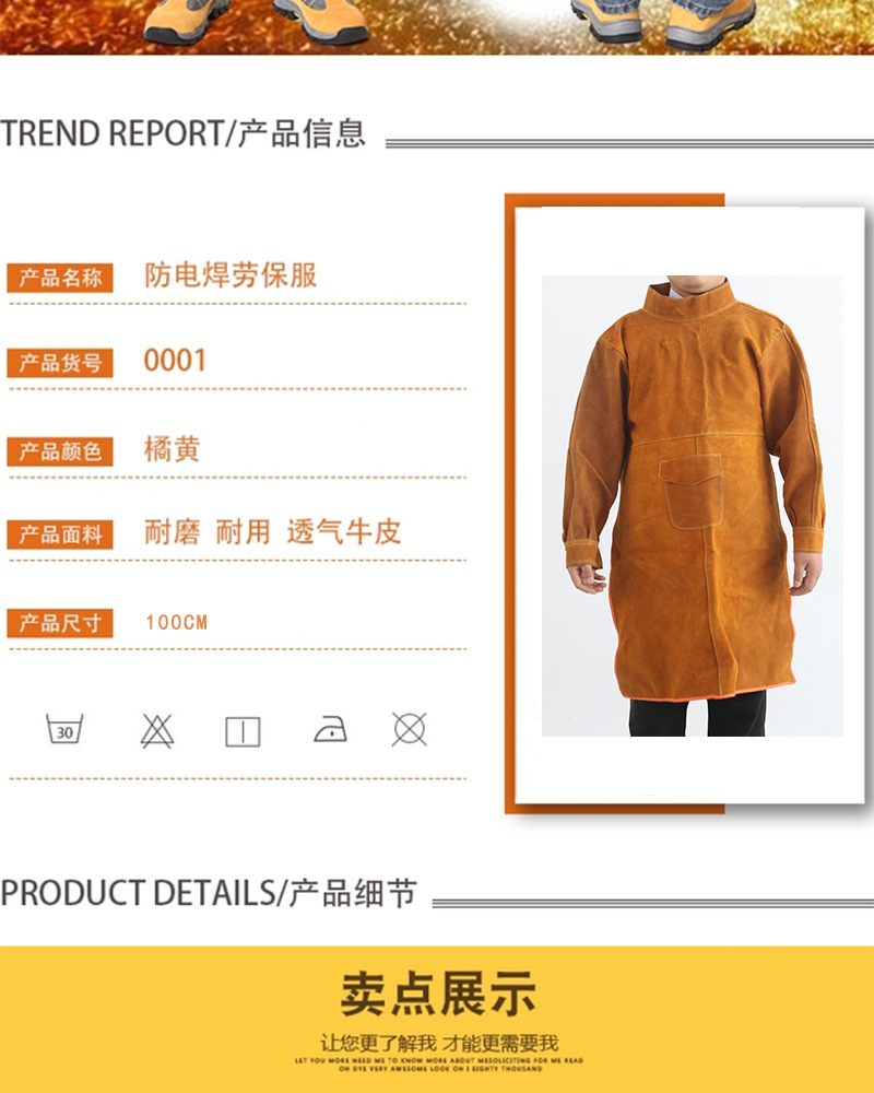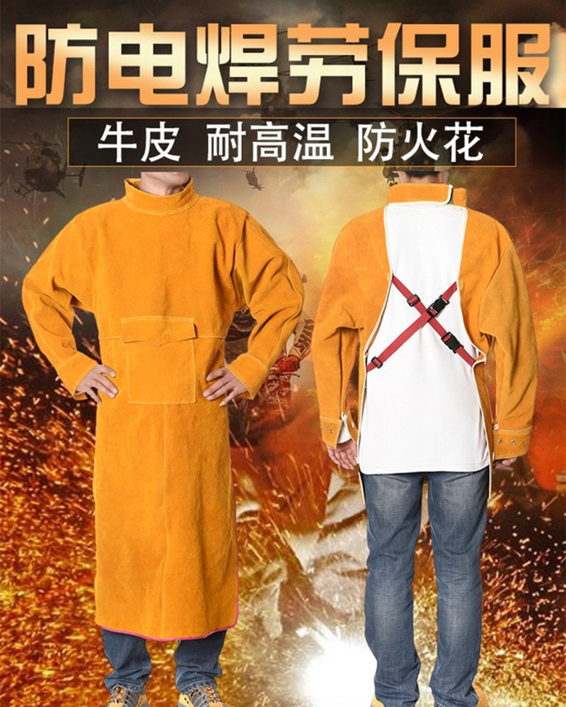 家旭 牛皮电焊反穿衣工作围裙放火花耐磨防烫电焊阻燃防护服真皮隔热 105长袖;