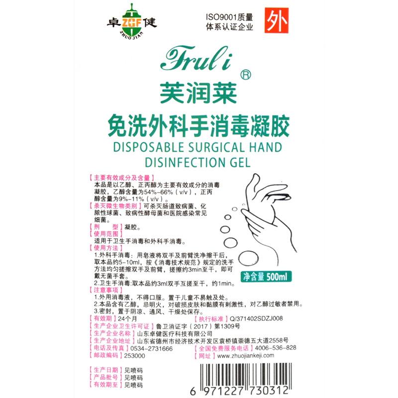 芙润莱 医用免洗手消毒液 500ml;