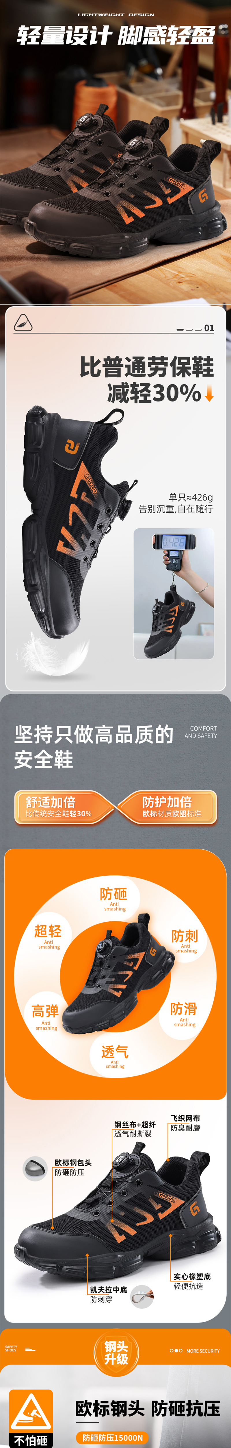 • 商品名称:GUYISA 3117 防砸防刺穿 轻便安全鞋