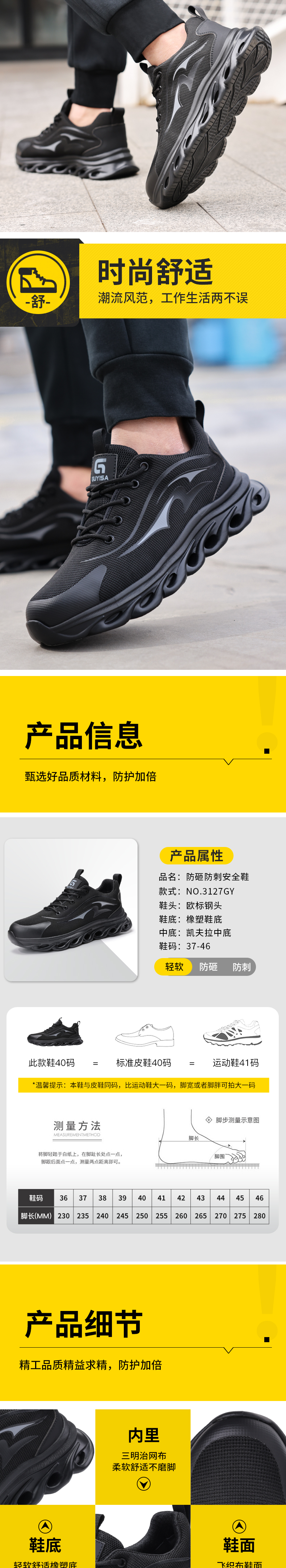 • 商品名称:GUYISA 3127GY 防砸防刺穿 舒适轻便安全鞋