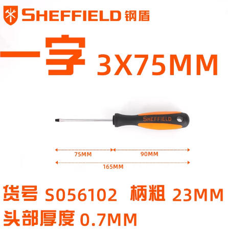 • 商品名称:钢盾 S056102 双色柄一字螺丝批3X75mm