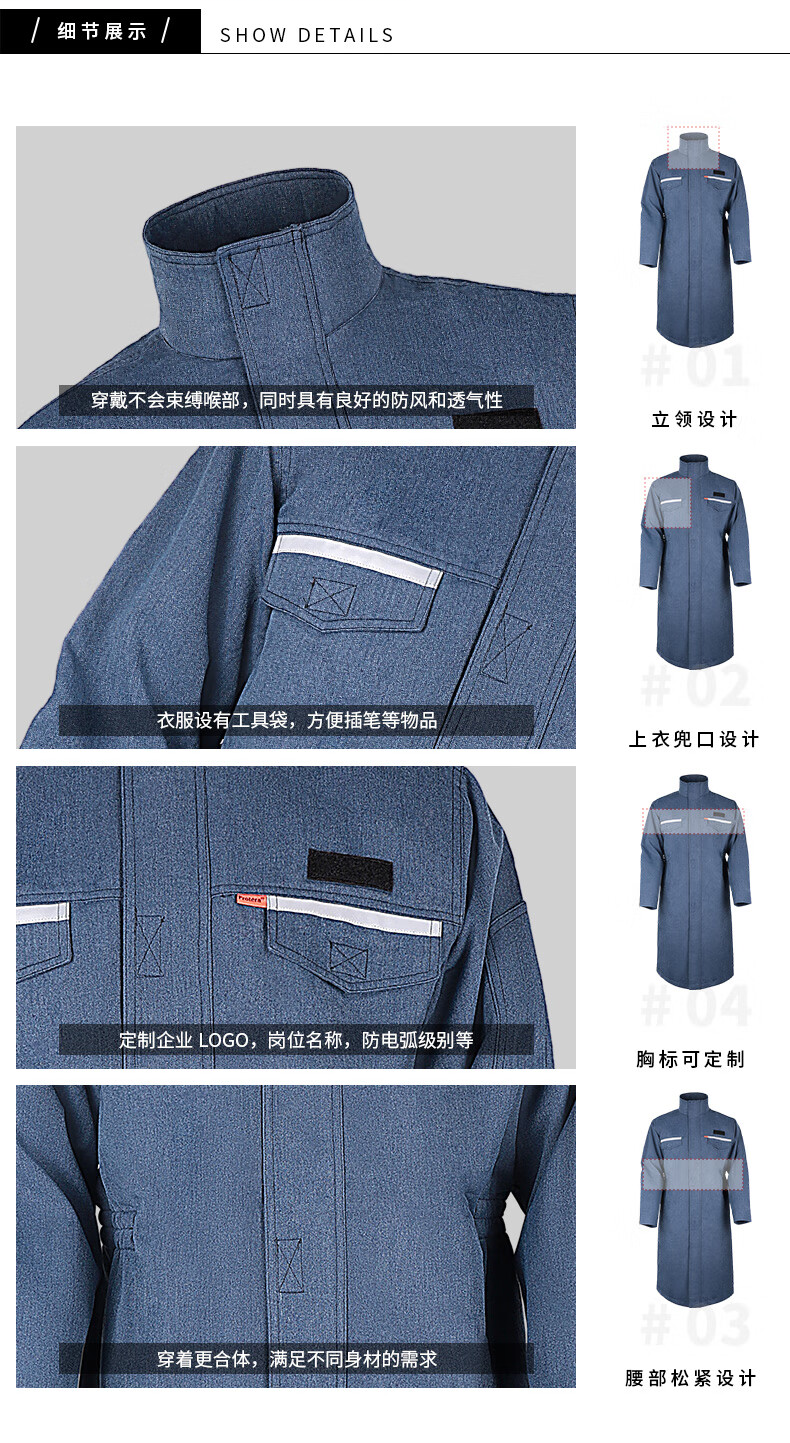 此款工作服材质柔软舒适,耐磨耐用。