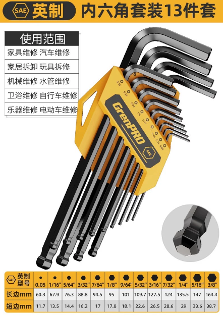 • 商品名称:绿林 071392CH 内六角扳手12件英制球头