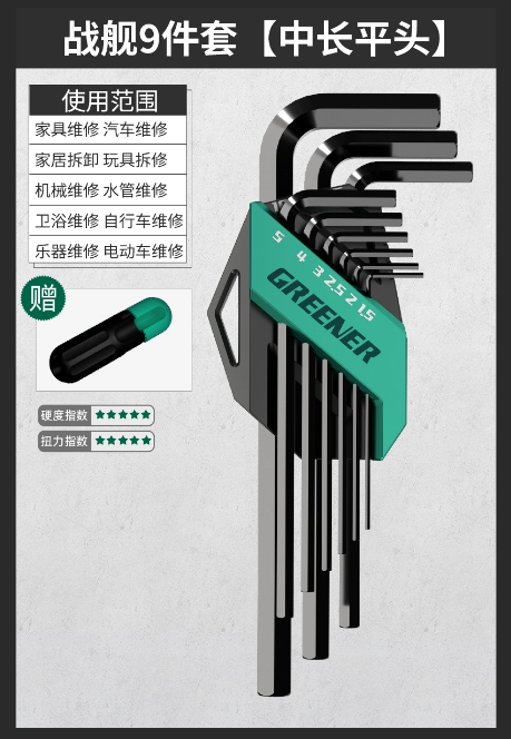 • 商品名称:绿林 039843+1 公制9件套平头内六角套装