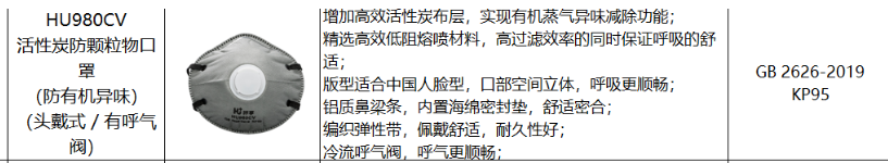 • 商品名称:呼享 HU980CV 罩杯式活性炭防颗粒物口罩 KN95