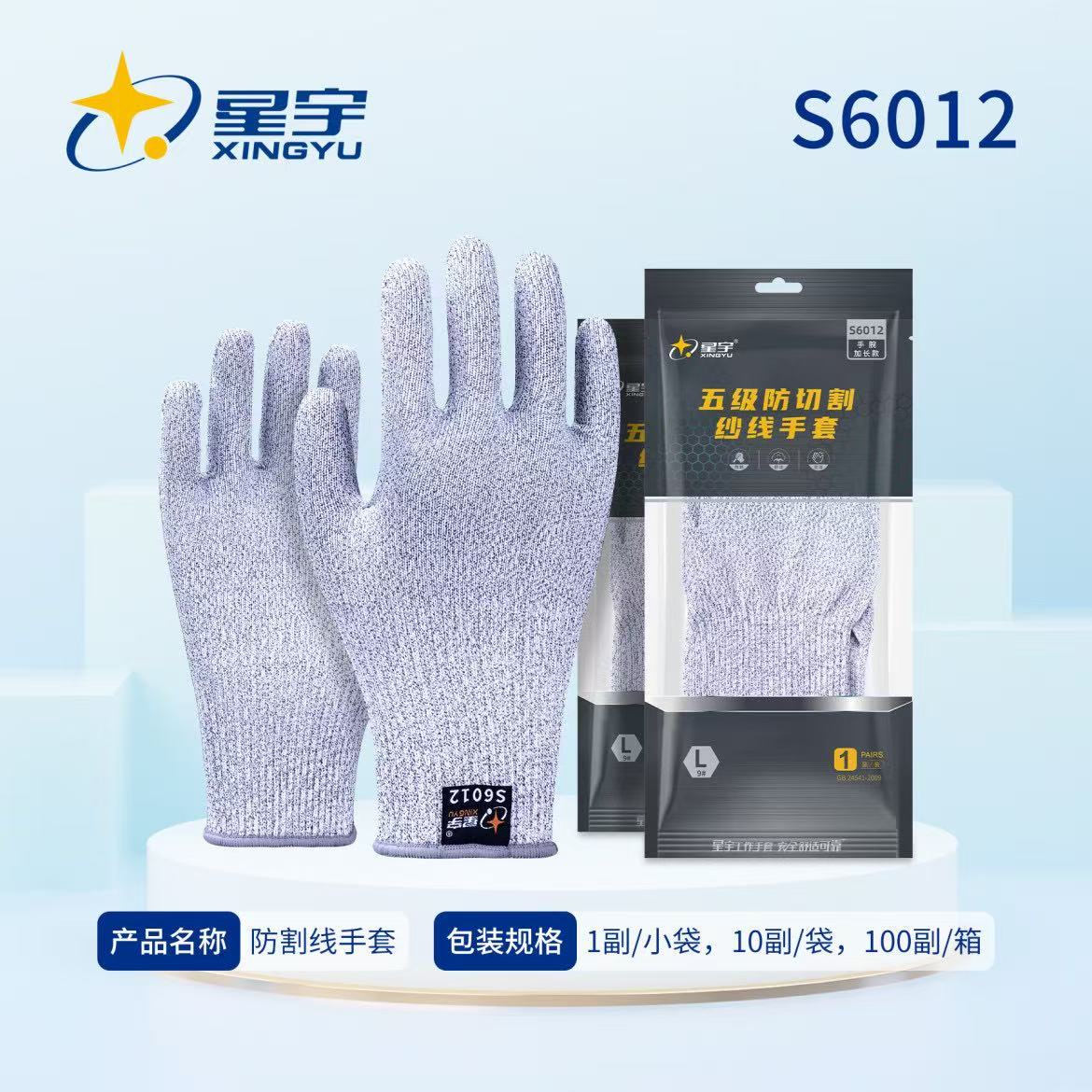 • 商品名称:星宇 S6012 防割线手套 5级防切割劳保手套