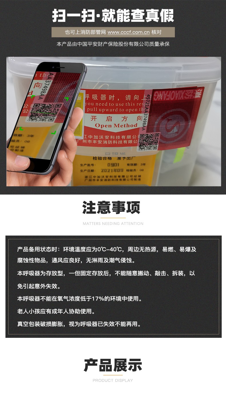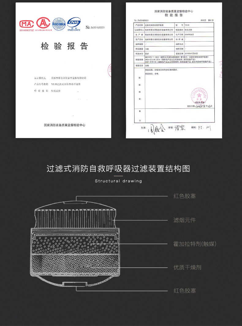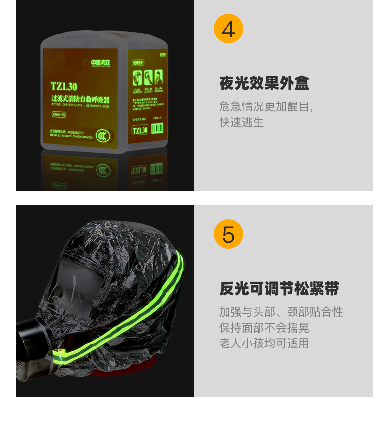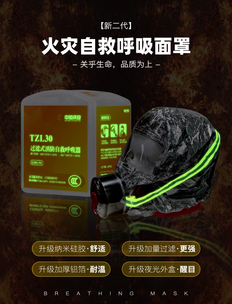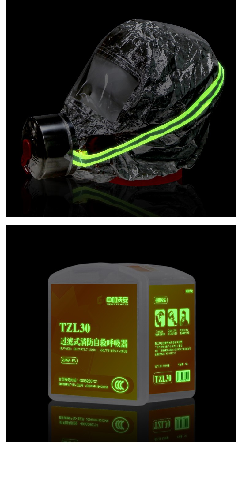 中加沃安 TZL30夜光版过滤式消防自救呼吸器;