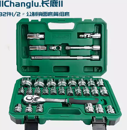• 商品名称:长鹿工具 101801 32件12.5mm系列镜面铬钒套筒方盒组套(自脱棘轮)