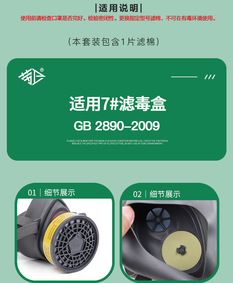 ●注意事项:使用前请检查口罩是否完好,检验密闭性,更换指定型号滤棉,不可在有毒环境使用。