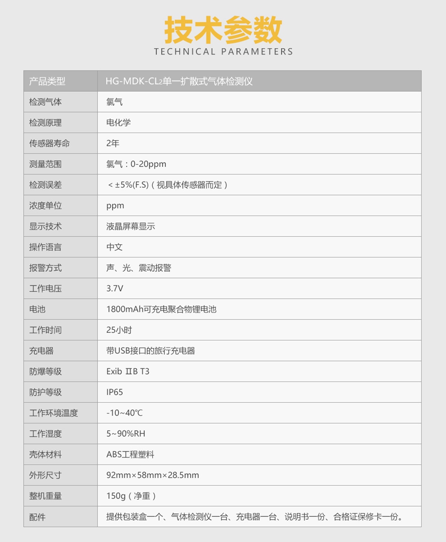 产品名称:海固 HG-MDK-CL2迷你单一扩散式氯气气体检测仪;