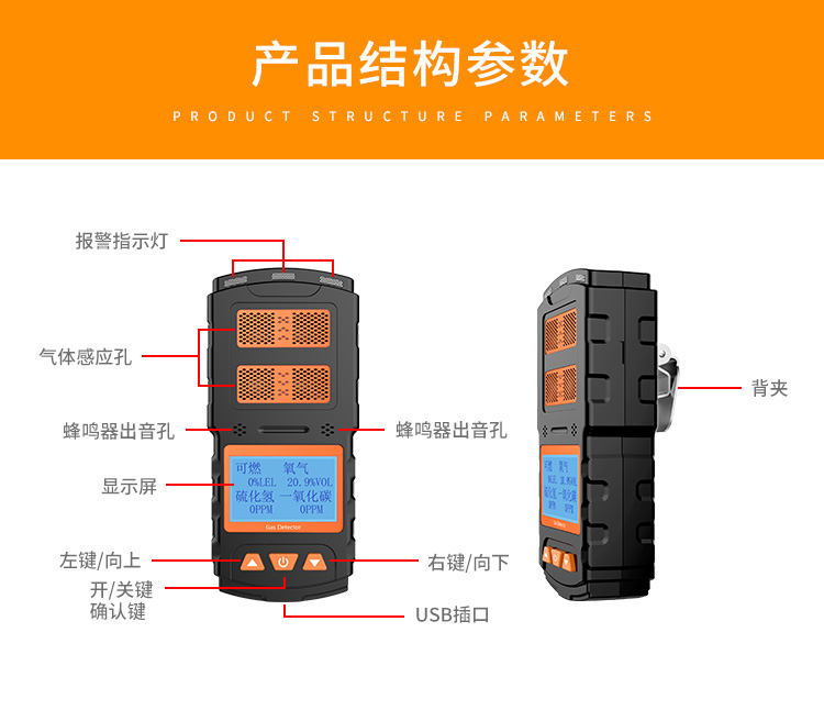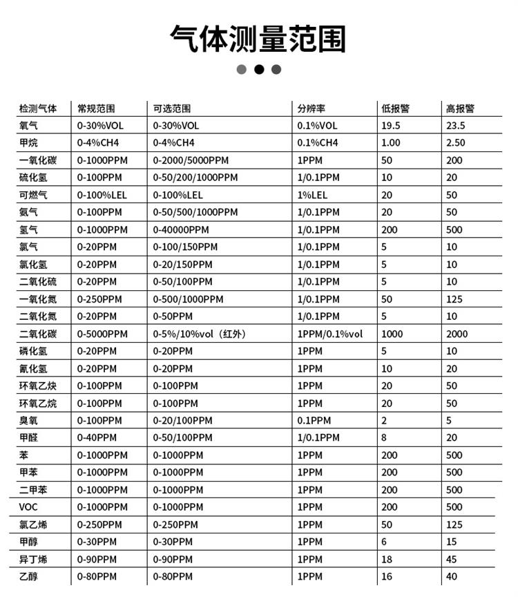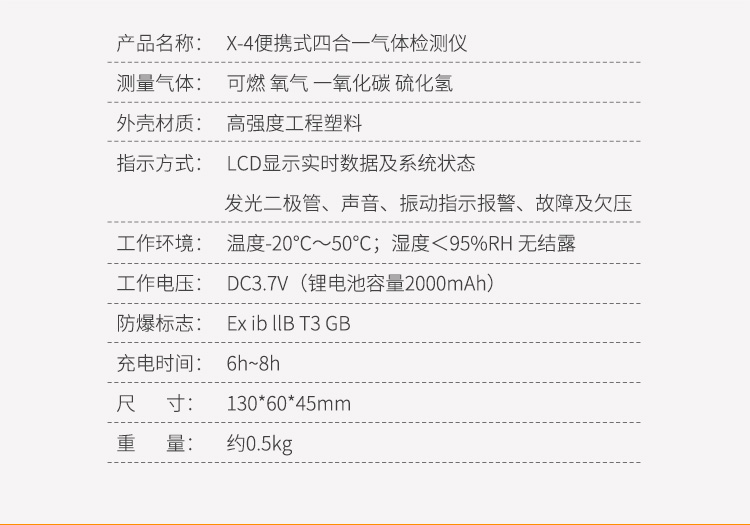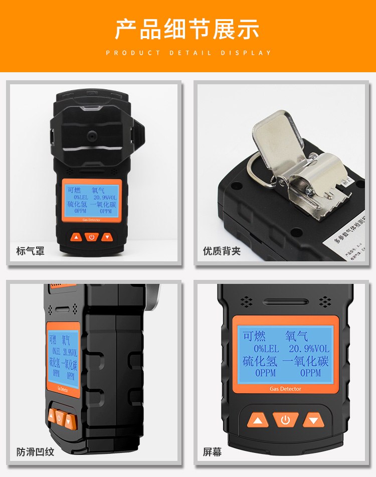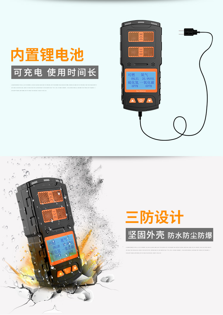 检测气体类型:氧气/可燃气/硫化氢/一氧化碳;