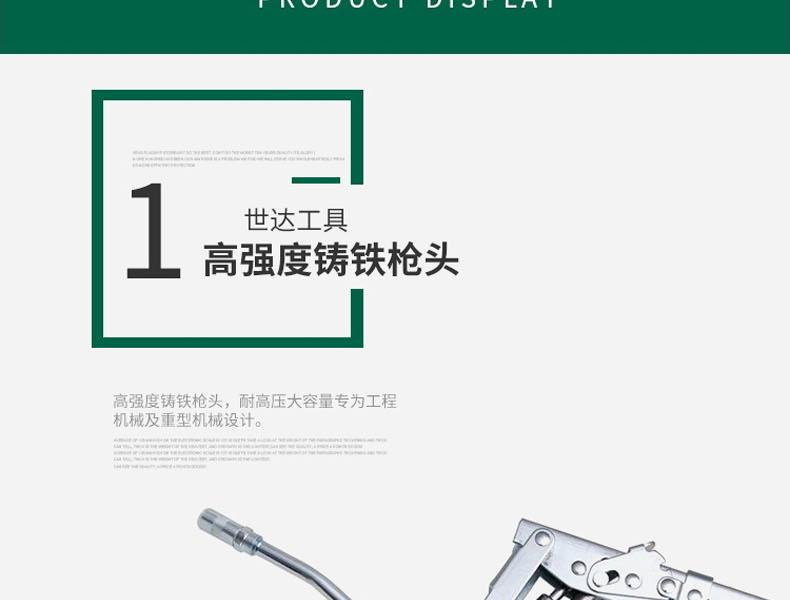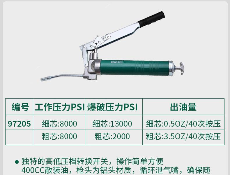 400CC散装油,枪头为铝头材质,循环泄气嘴,确保随时排空枪筒内的空气,使黄油枪工作更顺畅;