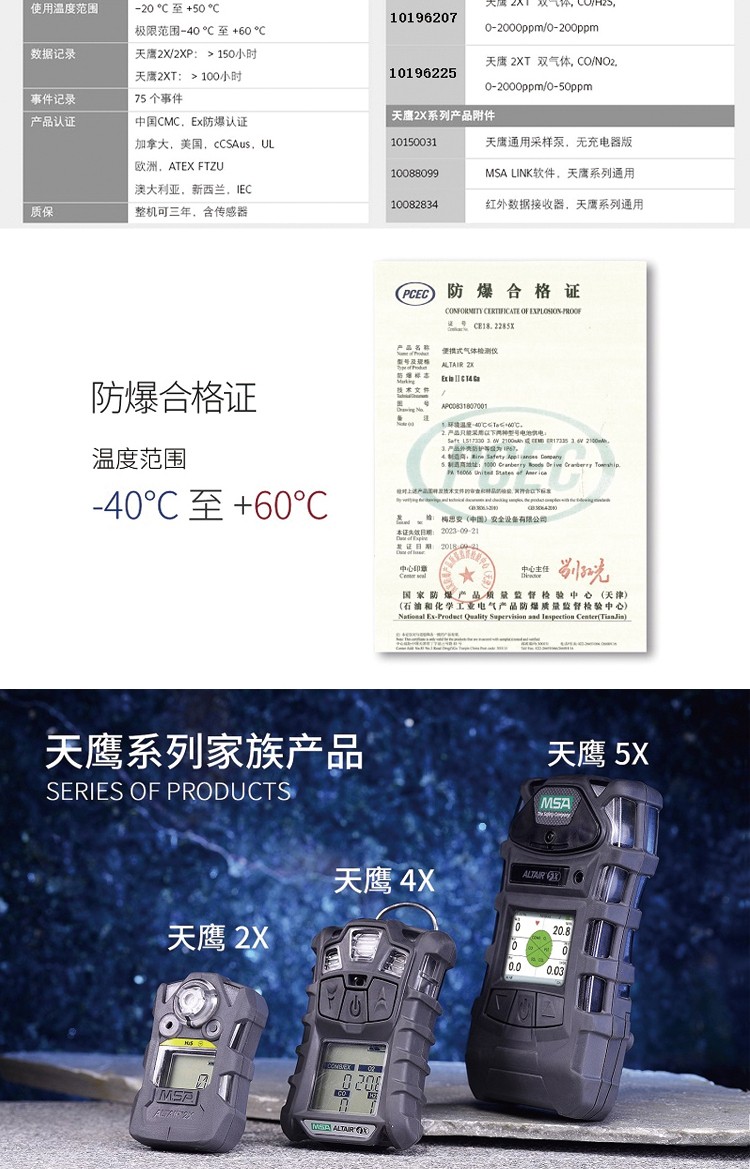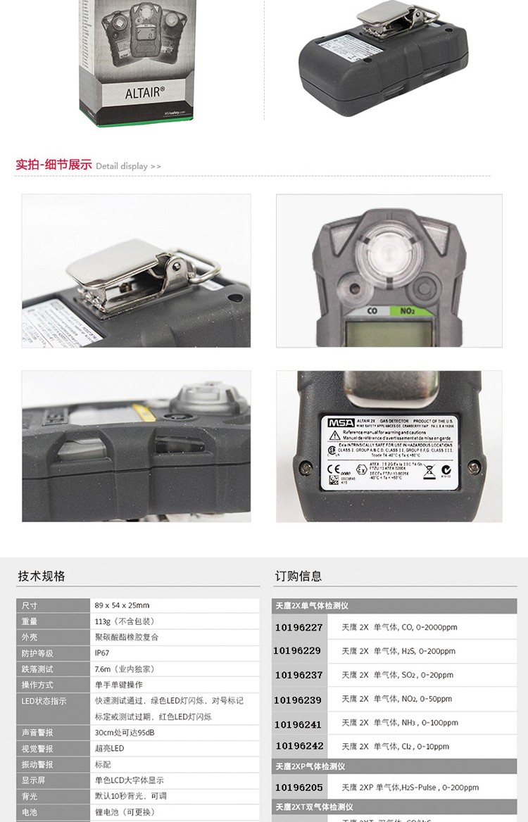 梅思安10196225(国产版)天鹰2XT 双气体检测仪 CO/NO2(一氧化碳/二氧化氮)。